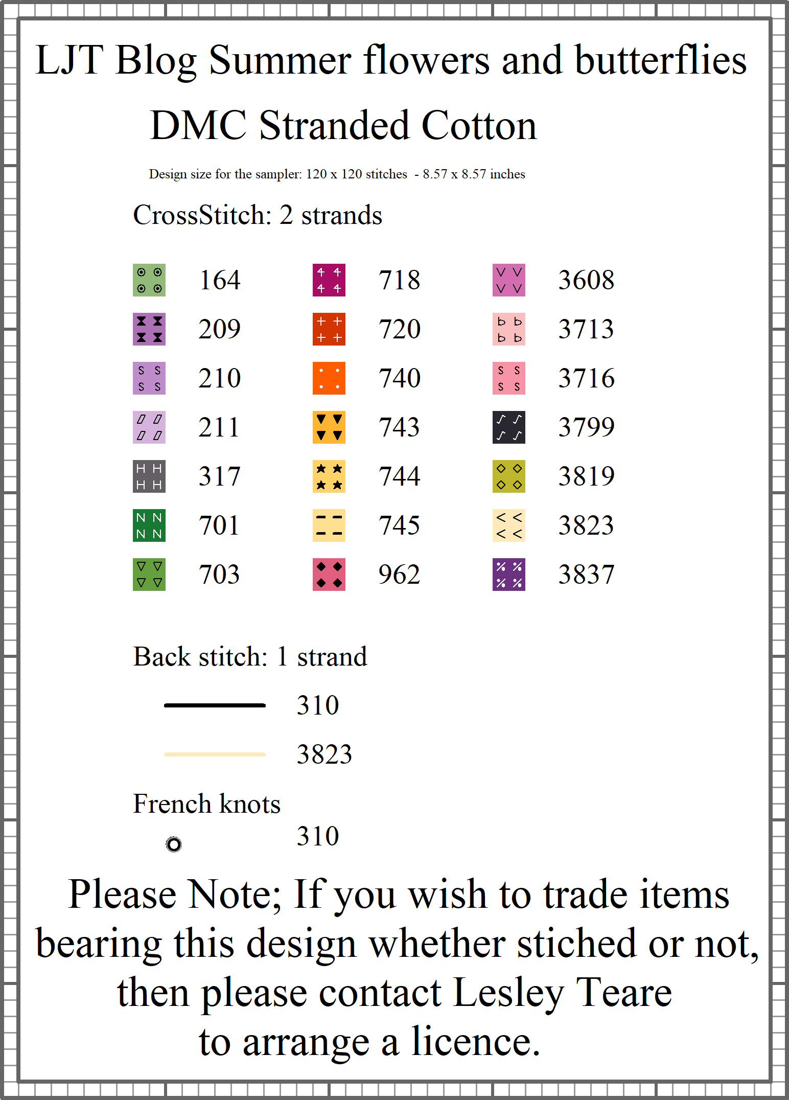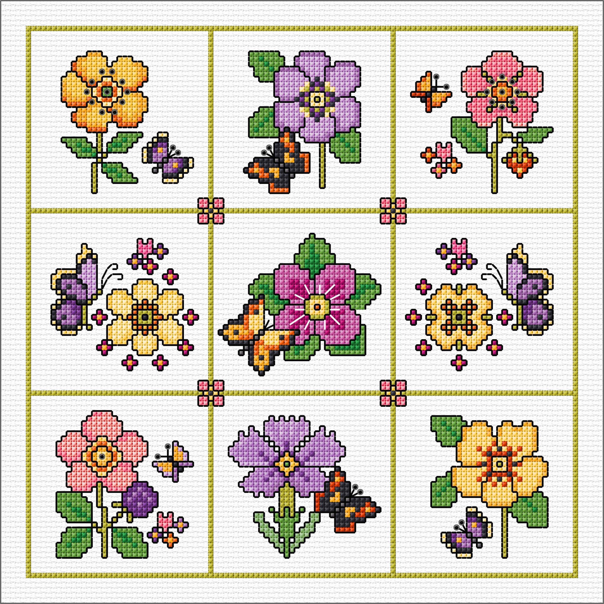 The start of a new Blog which I hope you aill enjoy. 9 designs of summer flowers and butterflies which can be stitched as a complete sampler or each design will make super little cards.
