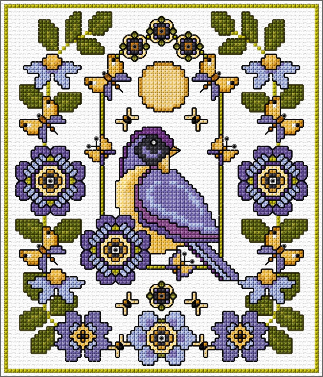 A lovely design with pretty patterned flowers and decorative bird. Stitch on 14 count Aida or 28 count evenweave.