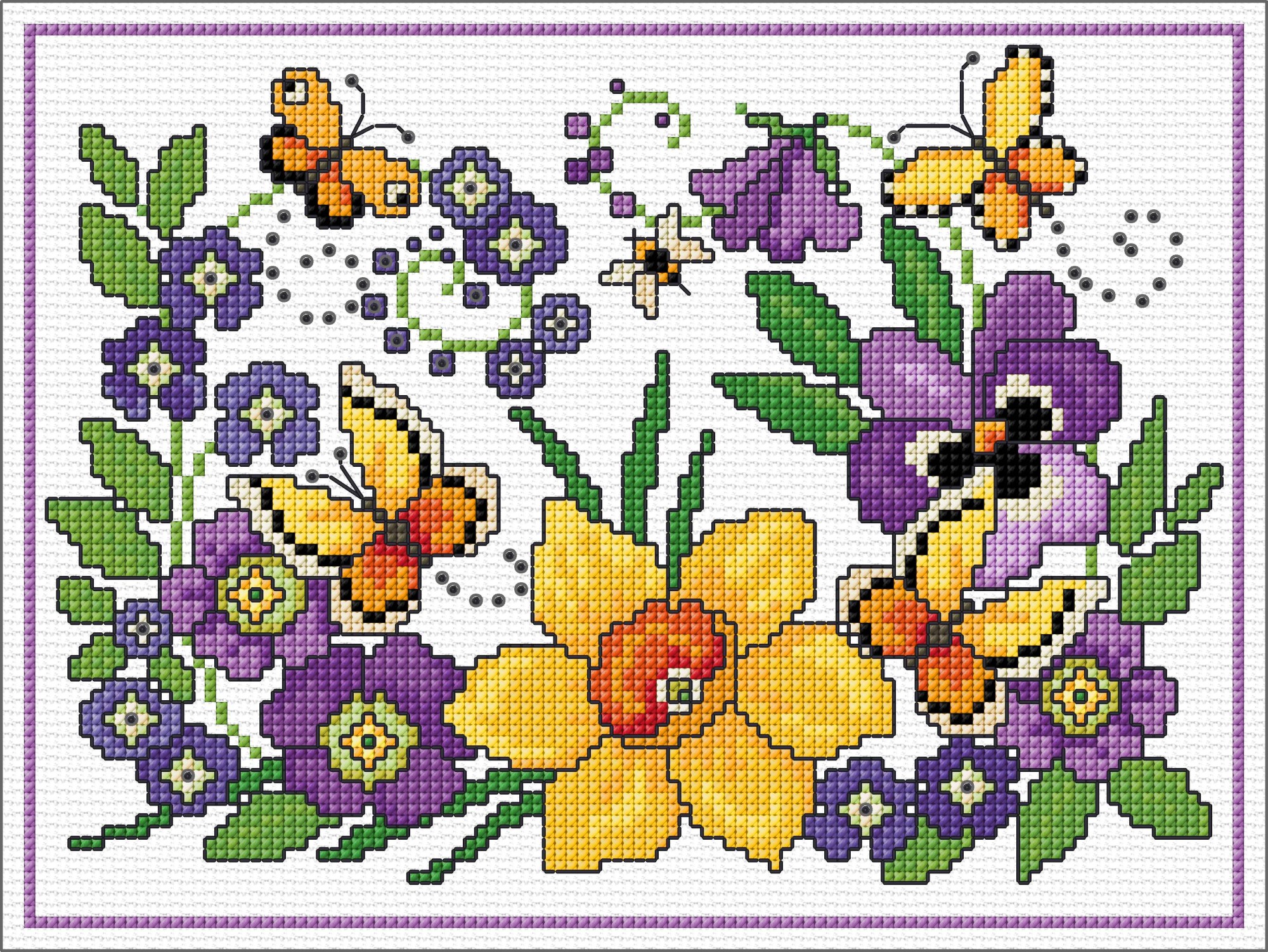 A delightful arrangement of Spring flowers that is fairly easy to stitich. Work on 14 count Aida or 28 count evenweave.