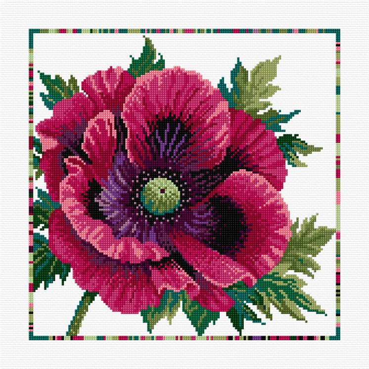 This beautiful Opium poppy will delight througout the year and with only 16 colours and whole cross stitches it is also easy to stitch. Work it on 14 count Aida and 28 count evenweave.